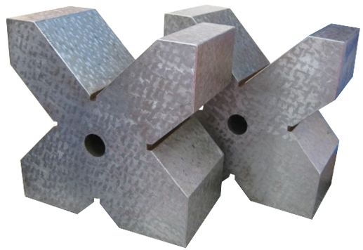 V型架用来支承轴类、管类、套管类等圆柱形工件,使工件轴心线平行于本台工作面,以便找正和划线时使用的检验量具,一般都成对供应,是一个四棱体,四个工作面上或四个尺寸不同的90度的槽。